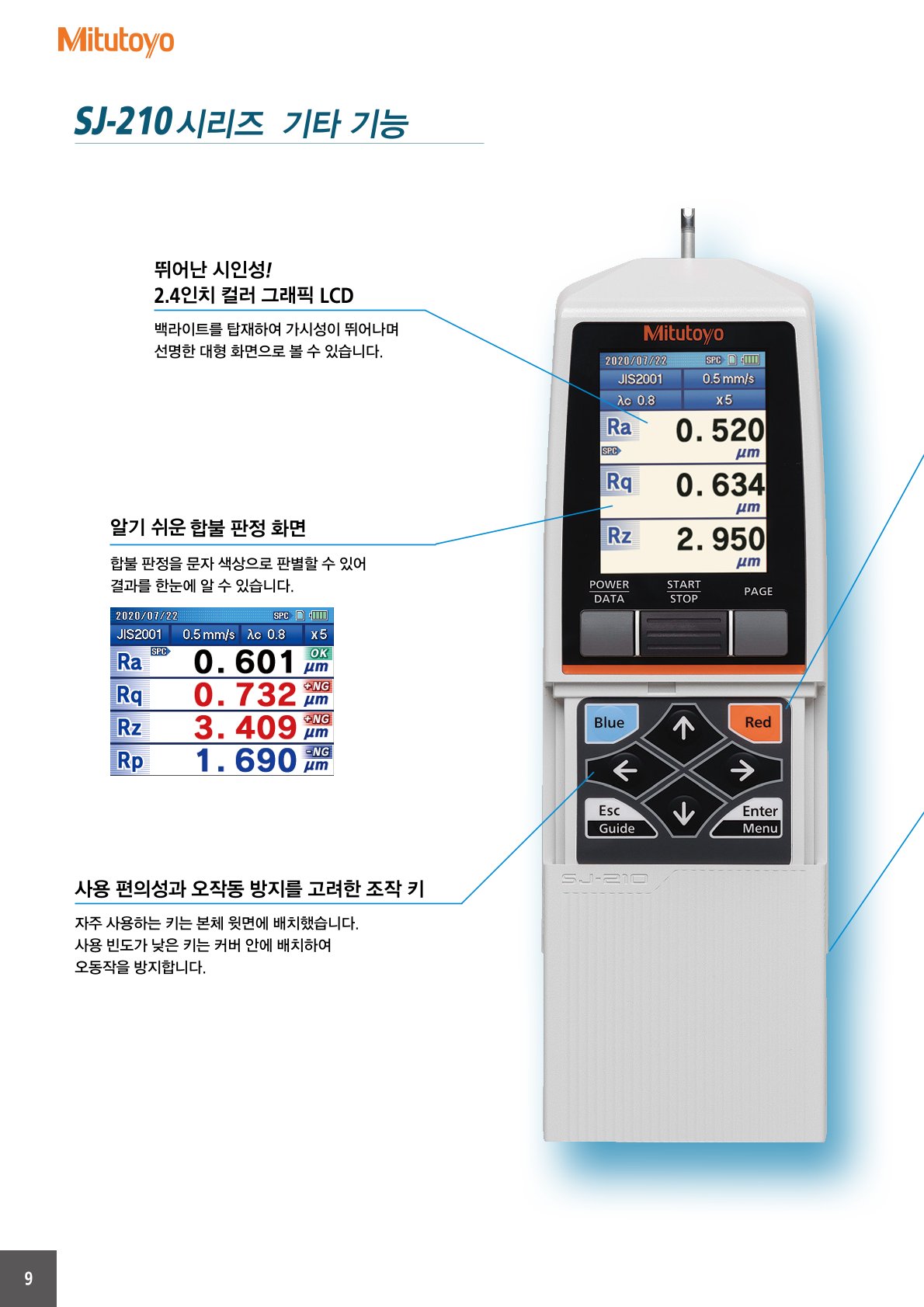 휴대용 소형 표면 조도 측정기입니다. 컬러 LCD로 가시성이 향상되었고